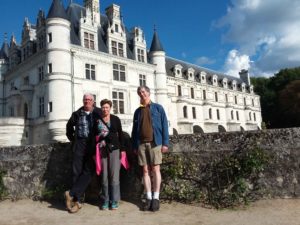 Today, as well as being Liz’s birthday, is the first changeover day. James arrived in Tours last night and the three of us made the short ride along the banks of the river Cher to Chenonceaux this morning. It was a chilly start to the day, but with bright sunshine and the mist hanging over the river, we loved the ride.
